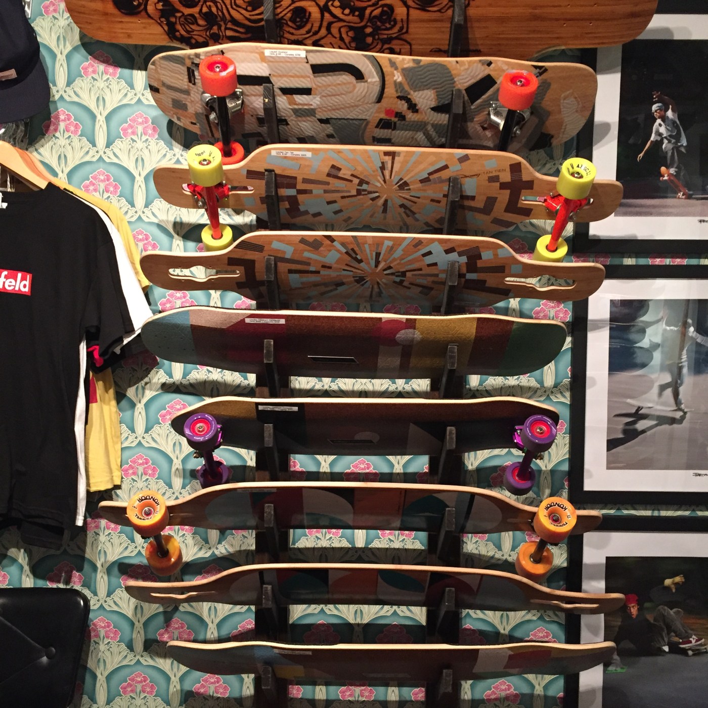Before opening his business, Gaites held a range of jobs, from construction to fundraising to selling photos for Getty Images. About 11 years ago, Gaites got involved organizing longboard events and soon people were coming to him for recommendations on what kind of boards to buy. Gaites, who has been skating since he was five years old, gave people guidance. In 2005, he contacted several longboard companies and became a representative. “I kept about 20 demo boards above the kitchen cabinets or in the closets and then somebody would call me up and I would let them pick four or five boards, they would try them out, and then when they liked one I would place the order and ship it to their apartment,” said Gaites.